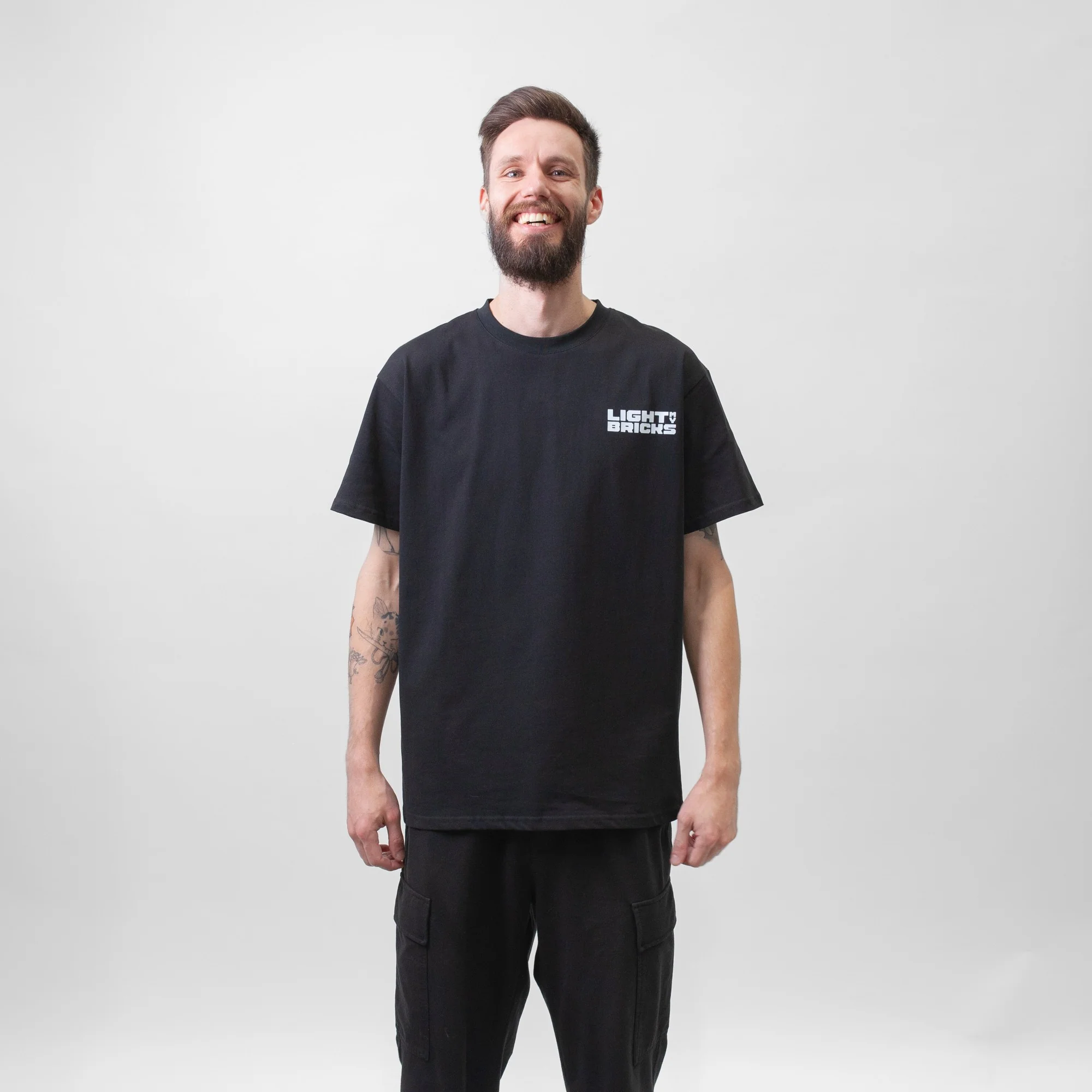 Light up your style with this comfy black T-shirt from Light My Bricks™, featuring our signature logo. Available in sizes SML-XXL. Showcase your passion for LEGO lighting today!